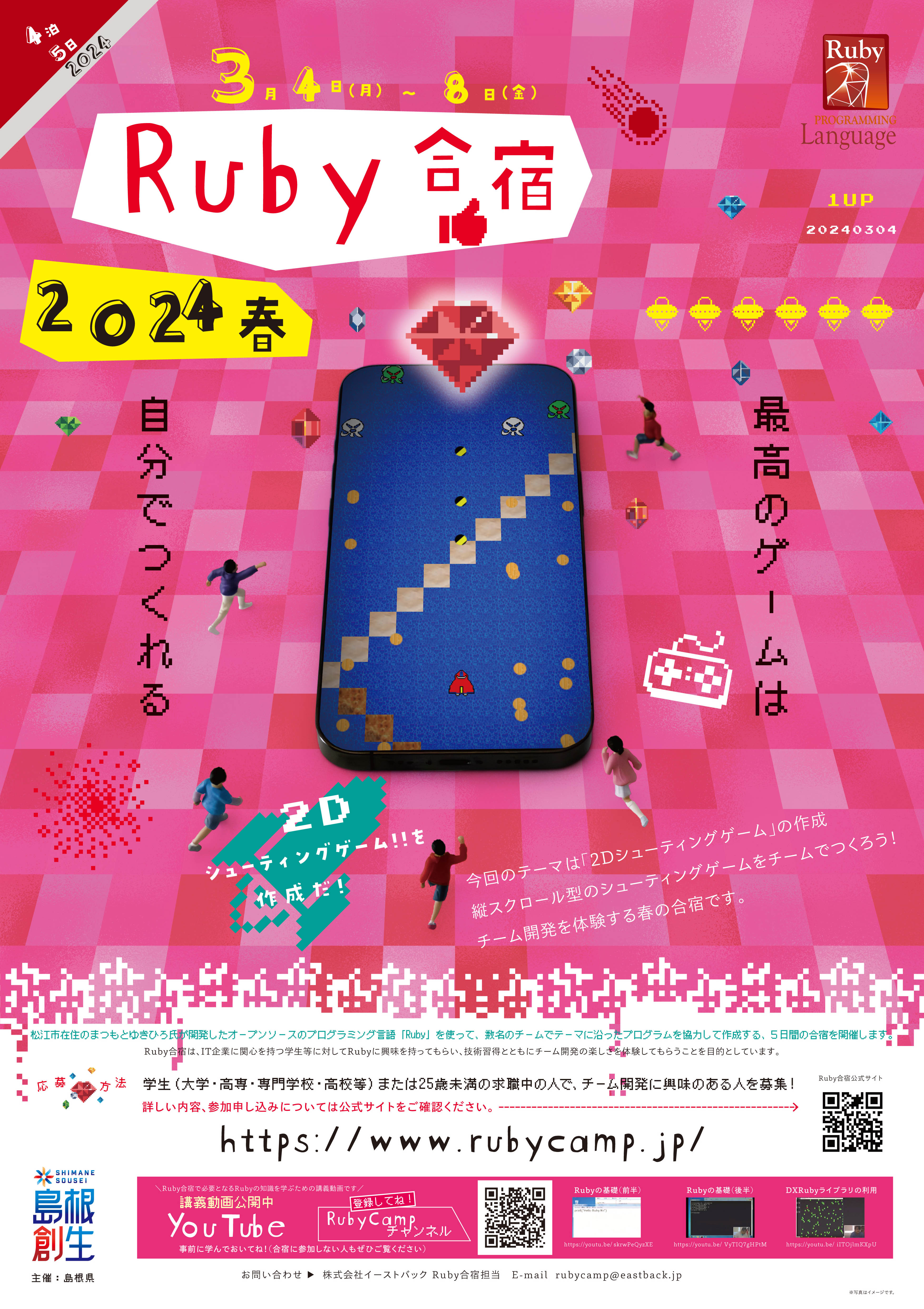 「プログラム作成ポイント」では、Ruby合宿で使用する2Dマルチメディアライブラリ「DXRubyライブラリ」の概要と、ライブラリを利用したゲームを作成する上で必要な知識の説明を行いました。
